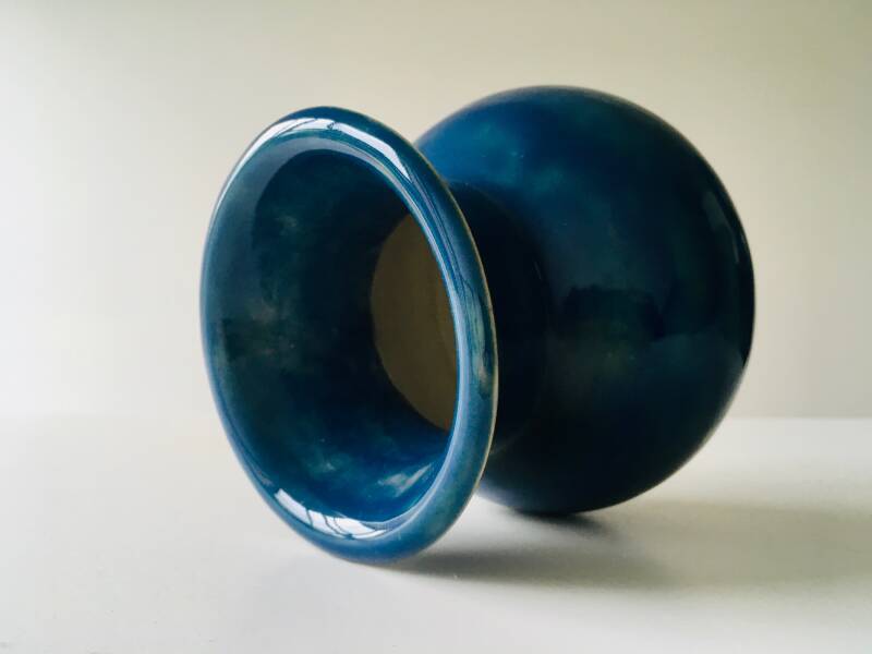 Bright blue shiny vase (14,5 cm h.), signed "A. Petrus" and dated 1953.