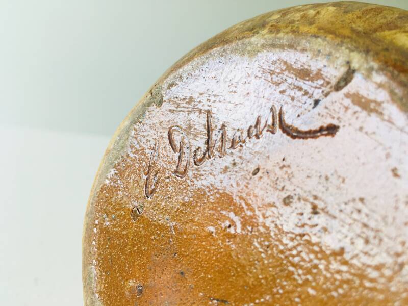 Sober little vase in earth tones (16.5 cm), signed at the bottom "C. Delsaux".