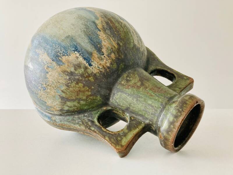 Stunning handled vase (c.33,5 cm h.). Compare Fauconnier & Migeot, Sel et feu (1995), p. 67, nr. 209, and , and Drouot Mobilier, Vente: Tableaux, meubles et objects d’art, Bruxelles, 23-24 novembre 2009, lot 522 and 537.