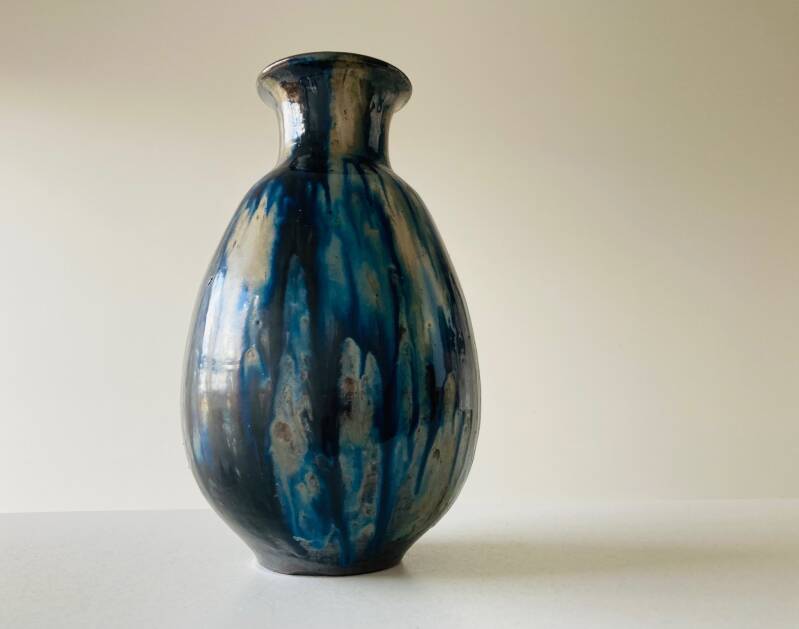 Fabulous bright blue Grégoire vase, signed E.G. (37,5 cm h.)