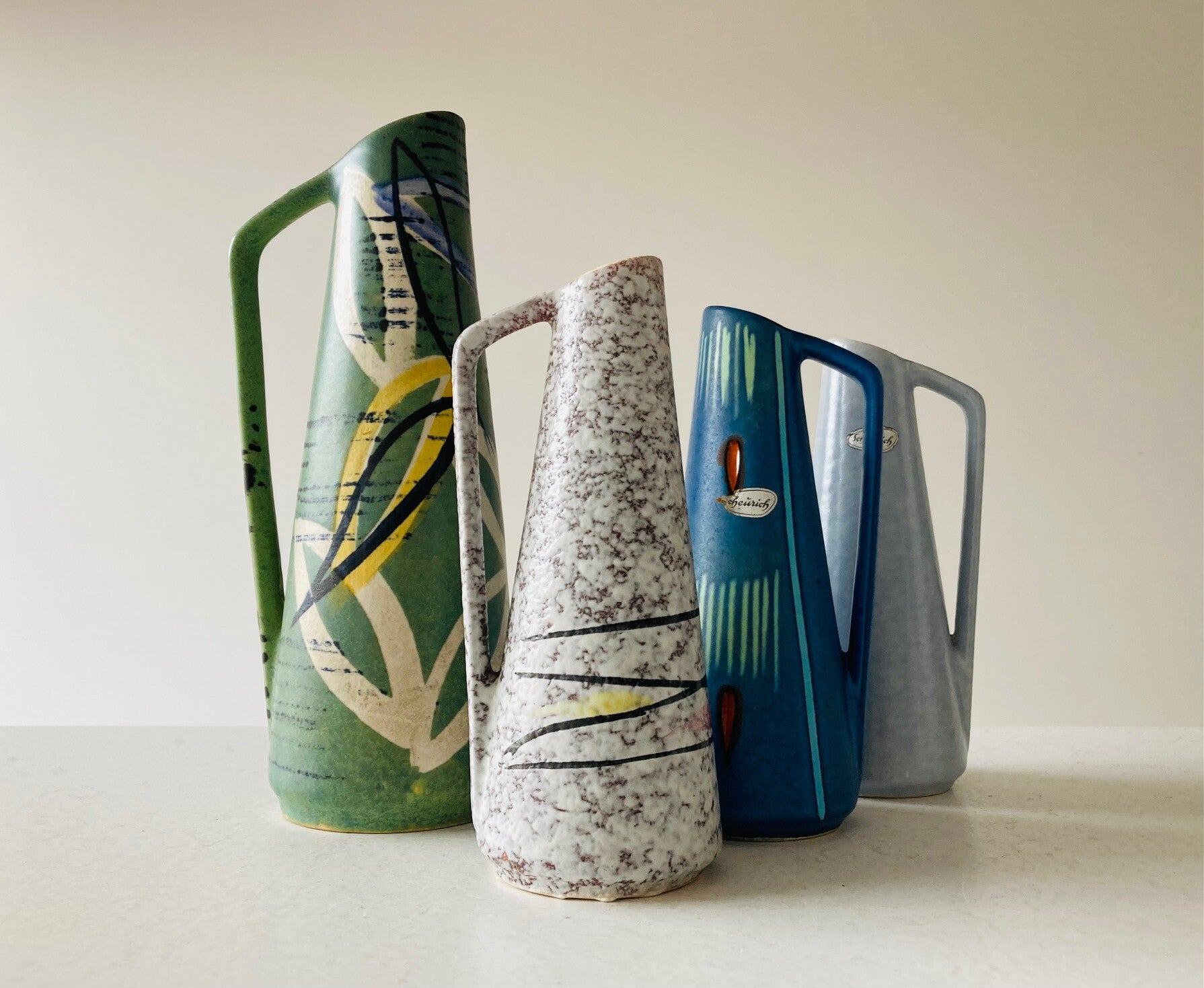 A classic among Scheurich vases, designed by Heinz Siery – a giant in the field of ceramics design in the 1950s and 1960s. Marked "Foreign", 275-20 and 275-28, in a variety of glazes, two of these vases still carry the original silver foil label used in the second half of the 50s up to 1962.